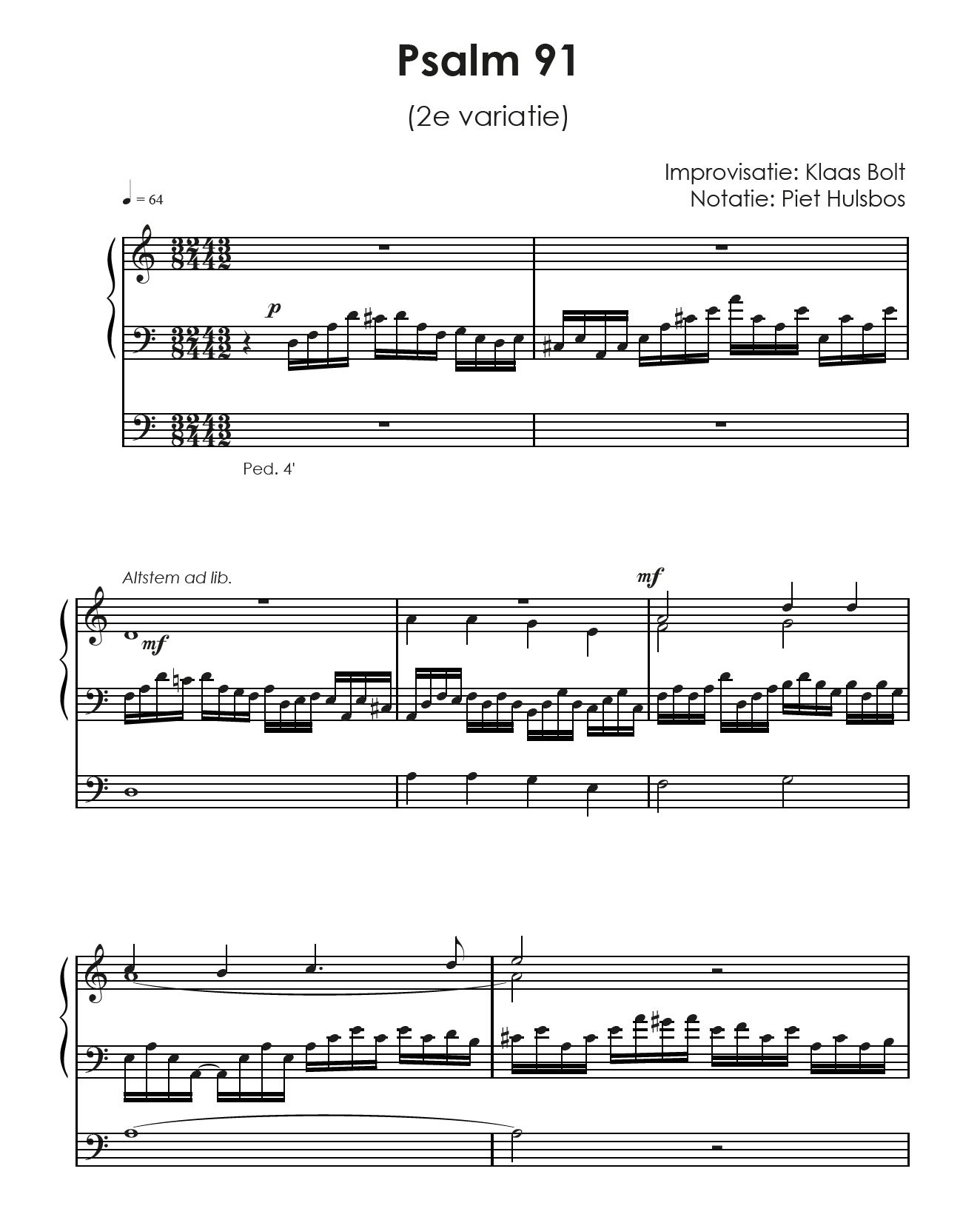 Het eerste deel van een tweedelige serie met improvisaties van Klaas Bolt, uitgeschreven door organist en dirigent Piet Hulsbos. Deze uitgave is stand komen op initiatief van Tromp van Goor.