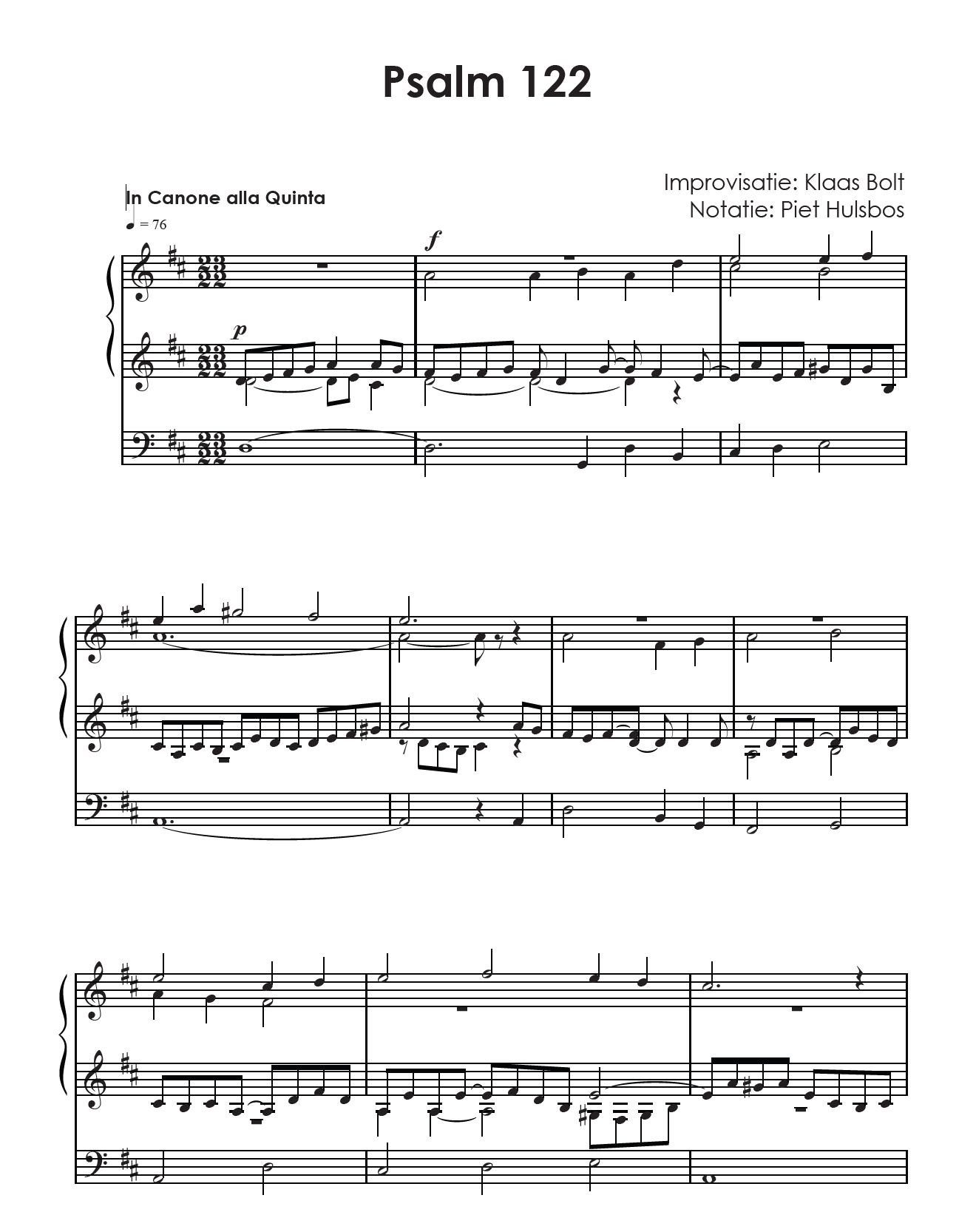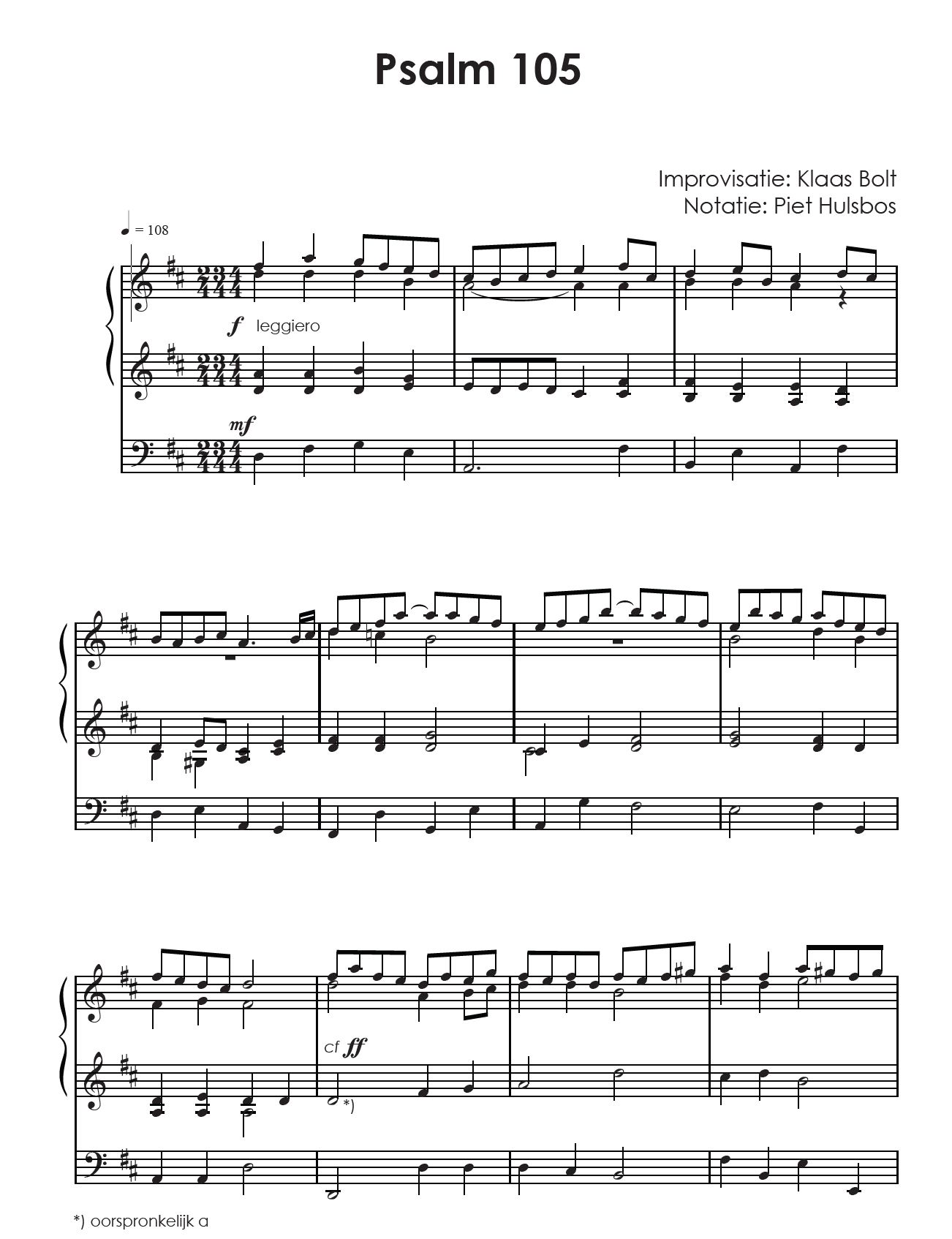 Het tweede deel van een tweedelige serie met improvisaties van Klaas Bolt, uitgeschreven door organist en dirigent Piet Hulsbos. Deze uitgave is stand komen op initiatief van Tromp van Goor.